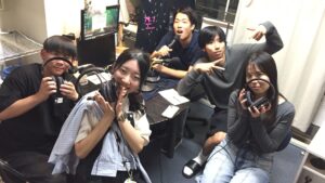 <ラジオ実習B班> 3回生:高岡聡子 2回生:藤田勇那、木村光伸、木村直人、須藤佳裕、出口愛賀、樋口菜奈、安川小百合