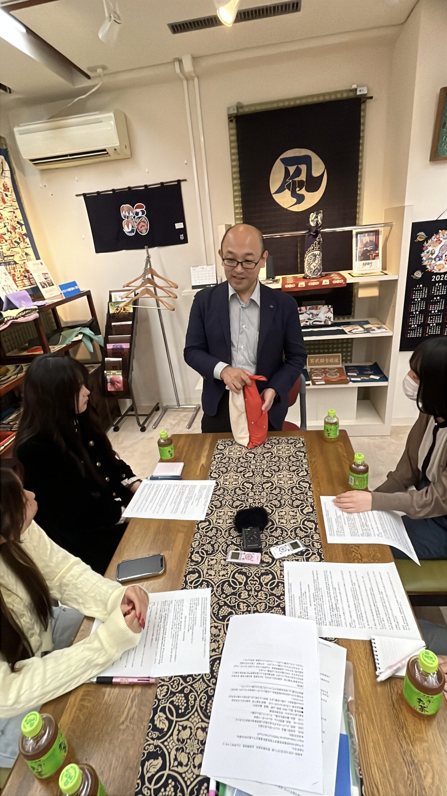 取材ではふろしきの歴史や新素材や技術革新への期待、海外の方からの反応などを伺いました。