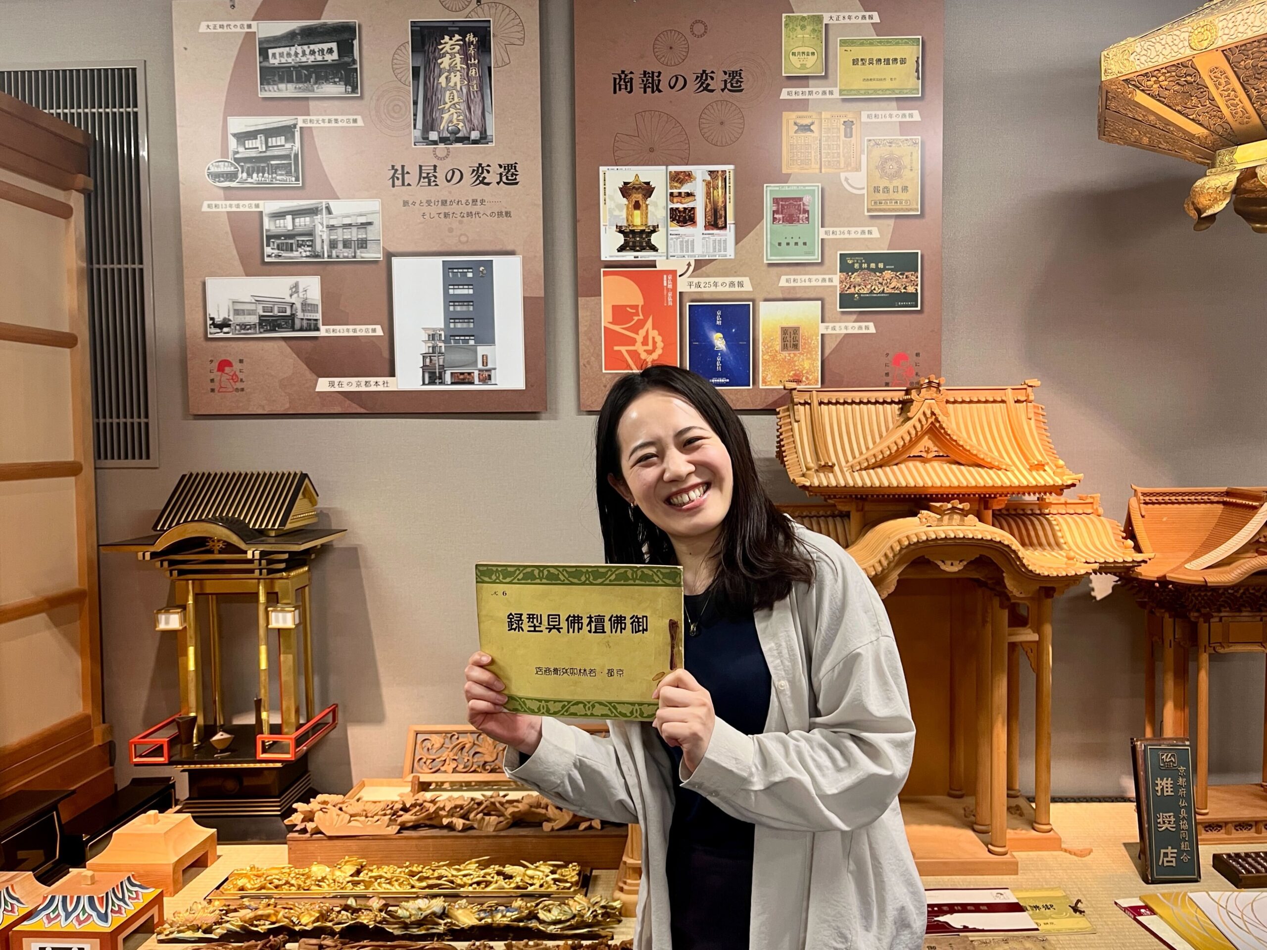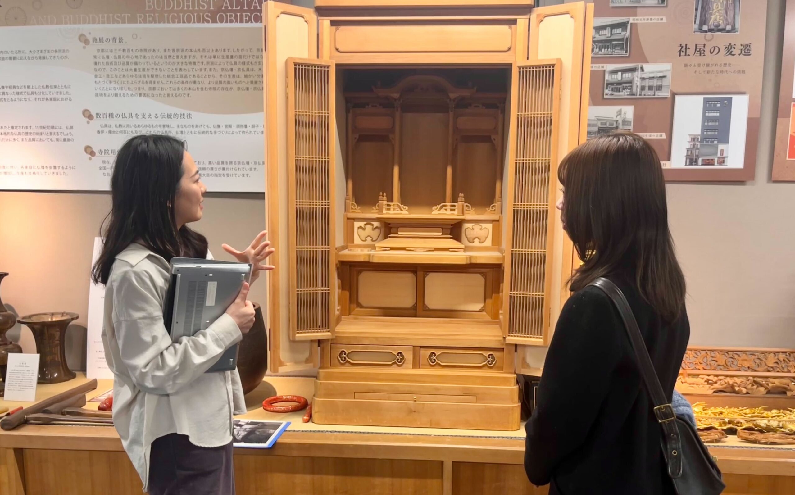 取材では本店5階にある「若林京仏壇ミュージアム」も見学させてもらいました。京仏壇の精緻な技巧を見てまわることができます(無料・要予約)。
